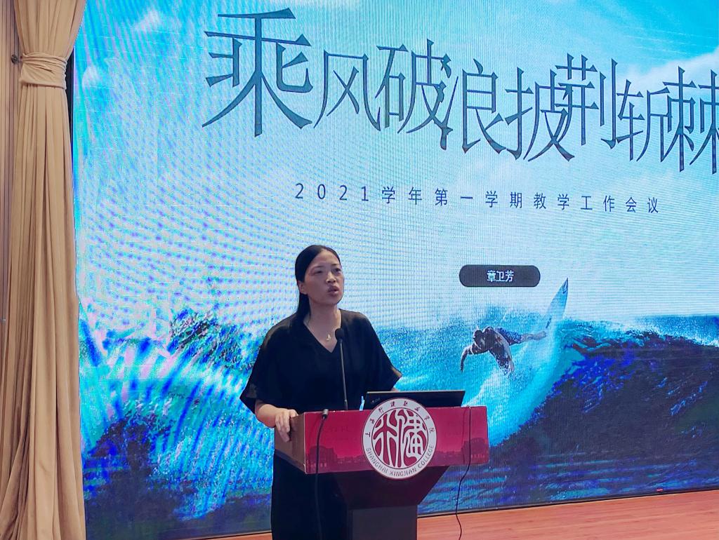章卫芳副院长以“乘风破浪,披荆斩棘”为题发表讲话。从“十三五”时期关键数据开篇,回顾了“十三五”时期关键办学指标、教育教学改革情况,肯定了过去五年取得的骄人战绩。向与会教师详细介绍了本年度招生、录取整体情况,领学了《关于“十四五”时期高等学校设置工作的意见》以及《上海市高等学校设置“十四五”规划》,分析了学院“十四五”规划重点任务及指标体系,从顶层设计层面阐述我院发展面临的机遇与挑战,勉励大家找准定位,发挥学院中心城区优势,专业错位竞争,共同打造高水平特色技能型专业,为学院区域紧密型高职院校发展助力。