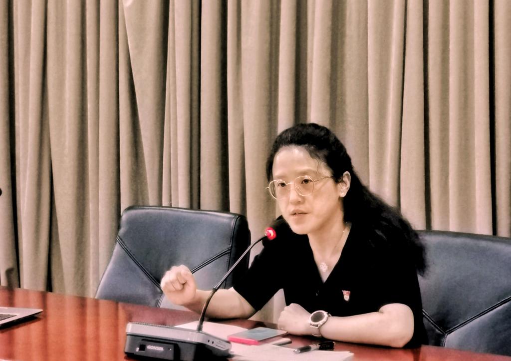 首先,曹娜按照学校党委党史学习教育工作要求,部署了近期党史学习的重点内容:学院各基层党支部应把深入学习贯彻习近平总书记“七一”重要讲话作为当前和今后一个时期一项重大政治任务,围绕巩固党史学习教育第一阶段取得的成效,全力做好党史学习教育第二阶段的各项工作,教育引导广大党员勇担当、讲奉献、谋发展,贯彻新发展理念,构建新发展格局,推动学院党建工作高质量发展。特别是将“学党史、办实事、开新局”的成效显现与学习习近平总书记关于教育、科技的系列重要讲话精神和论述结合起来。将党史学习教育融入教育教学,扎实推动“七一”重要讲话精神进教材、进课堂、进头脑,组织思政课教师集体备课将讲话精神融入思政课教学,在秋季学期“开学第一课”中将讲话精神作为重点内容。期间,曹娜还就9月份开展的党风廉政教育月情况进行总结,对筹备2021年工作总结进行布置,并强调要结合学院“十四五”规划,做好2022年工作规划等。