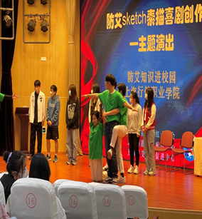 10月29日下午,静安区疾控中心传染病专家来我院做防治艾滋的科普讲座,百余名的学生参加了本次活动。讲座涉及艾滋病常见知识、艾滋病现状等方面内容,在提问环节,学生积极参与。随后,专业剧团演员通过素描喜剧创作和即兴表演的形式,带着学生深入浅出地全方面了解艾滋。学生们全程参与其中,收获匪浅。同学们纷纷表示,他们将不误解、不歧视艾滋病感染者,主动检测、知艾防艾、共享健康!(体卫部)