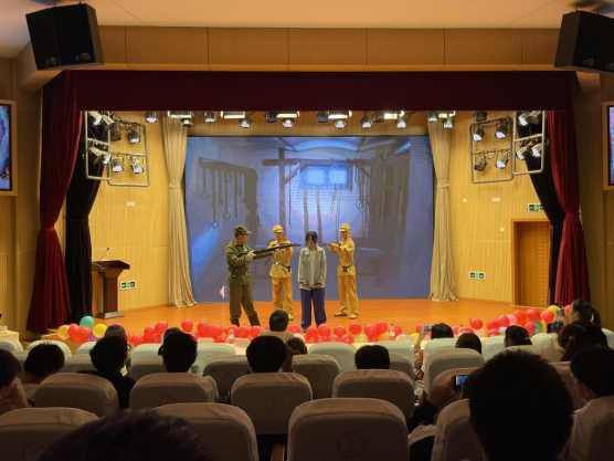 接着,文艺展演以情景剧、主题演讲、小品形式展开。情景剧《金色的鱼钩》,再现了红军长征过草地的场景,是对红军长征胜利85周年的一种纪念;演讲《洪水中的那一抹“忠诚蓝”》,讲述了感动中国2020年度人物陈陆的故事,歌颂了一个用生命践行承诺的消防员战士。《生命的颜色》《禾下乘凉梦》《随党做人》《时代匠心——蔡君杰》等节目围绕红色历史故事、时代新人、工匠人物等方面,以激情的演讲和生动形象的表演诠释了中国人骨子里的红色基因,展现了新时代大学生的风采,激励全体同学听党话、感党恩、跟党走。