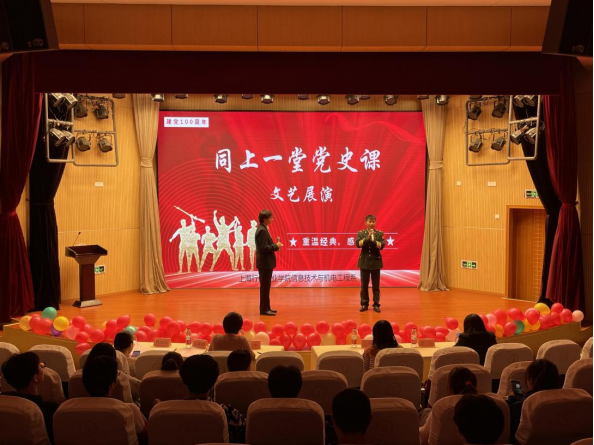 庆祝建党百年,传承红色基因。为了引导学生知史爱党、知史爱国,从党史中汲取持续深厚的奋斗之力,10月28日下午,信机系于明德楼1109室开展“同上一堂党史课”文艺展演活动。信机系党支部书记王永老师、宣传部余宁老师、信机系团总支书记庄淑珺、信机系辅导员李琴、姚婧婧、卜秀新和近180名学生参与本次活动。