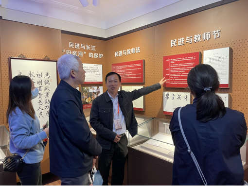 铜像对面就是纪念馆的大门,进入纪念馆,会员们参观了“民进先辈的早期斗争和民进的创建”“南京下关事件”“积极响应中共中央‘五一口号’”“民进参与协商建国”“改革开放,走进新时代”五个展厅。看着馆内陈列的资料和一些史料藏品,聆听着江海雄老师充满感情的解说,大家思绪万千,仿佛再现了民进先辈们与中国共产党风雨同舟、团结合作、共同奋斗的峥嵘岁月和光荣历程,从而对“爱国、民主、团结、求实”的真谛感受更深了。