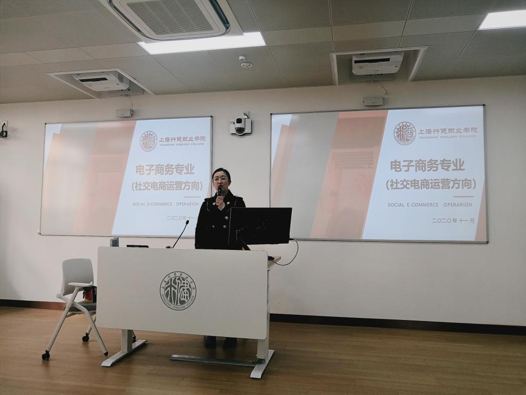 会上,经管系教师杜双双以“电子商务专业——社交电商运营方向”为主题进行工作汇报。她提到,社交电商已成为电子商务行业发展最快的细分赛道,“社交电商运营”人才紧缺,电子商务专业(社交电商运营方向)新专业方向的开设已经迫在眉睫。杜老师从新专业方向开设必要性、人才培养目标、专业建设基础、人才培养方案、建设规划五个方面向全系教师介绍电商专业未来工作方向,旨在培养符合2020年7月人社部发布新职业“互联网营销师”职业技能等级标准的高素质复合型人才。