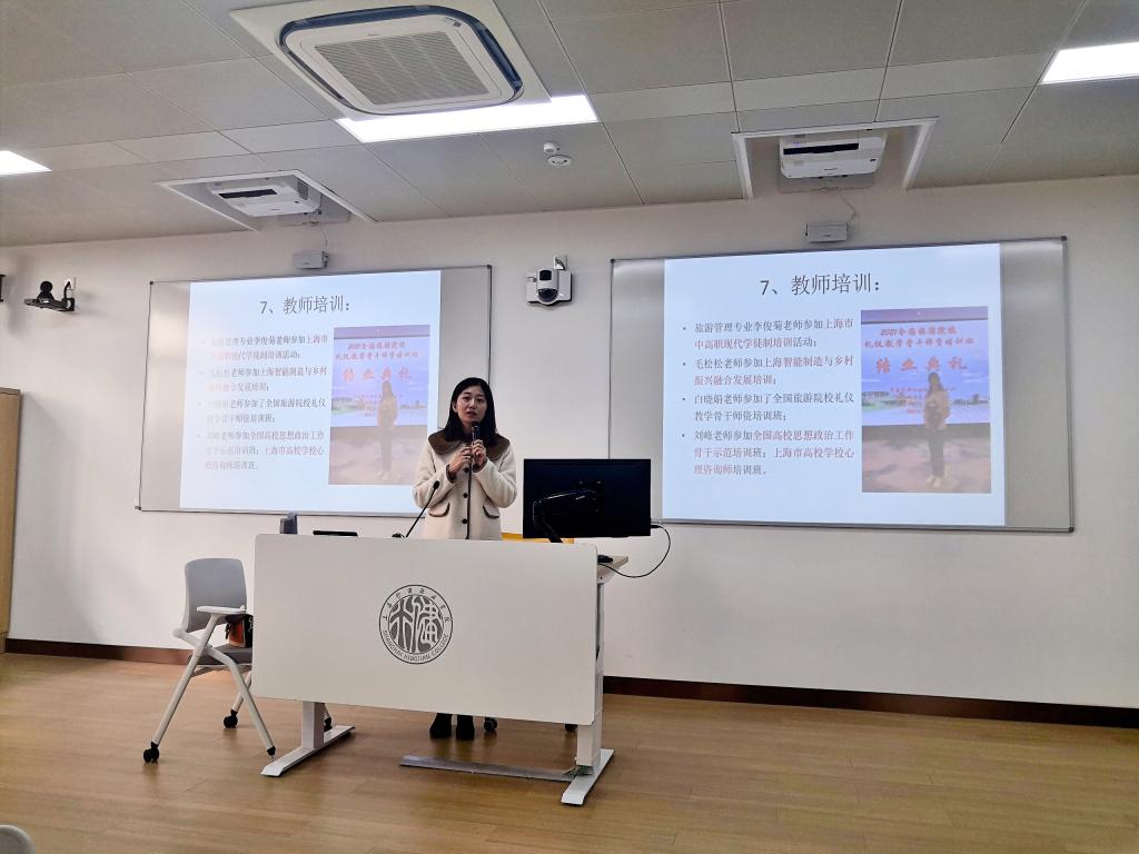 孙副主任首先总结经管系半学期的各项工作情况。她从教学常规管理、各专业建设情况、重点工作落实、师生培训获奖、未来工作设想等几方面对经管系已开展及将要开展的工作进行了梳理。她表示,本学期在全系教职工的共同努力下,经管系教学秩序总体运行良好,教学保障及各项安排到位,各专业建设也稳中有进。孙副主任希望全系教职工本着严谨认真的工作态度和求实创新的工作作风,围绕本学期全系工作计划与重点,进一步深化教育教学改革,积极探索和创新人才培养模式,提高人才培养质量,积极探索学生教育管理模式,团结一致使系部工作稳定推进。