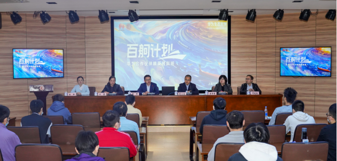 随后,联强国际项经理介绍了企业需求和企业对人才再培养机制。学生代表黄吉祥表达了对此次计划的感谢和认真学习的决心。与会领导共同宣布“百舸计划—华为合作伙伴精英预科班”正式开班。