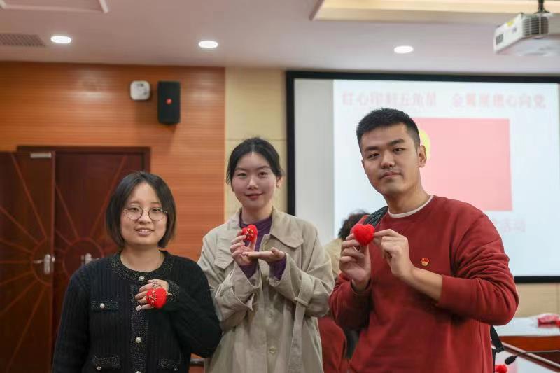 活动中,艺术系党员教师亲手体验如何在一颗红心上印刻五角星。在一点一滴的毛毡塑心过程中,党员们将自己对党的爱和感恩熔铸其中。本次活动邀请学院民盟成员共同参加,民盟成员和党支部党员一起在活动中传承革命基因、续写红色文化,感悟前辈们爱国爱党、为百姓牺牲的精神。