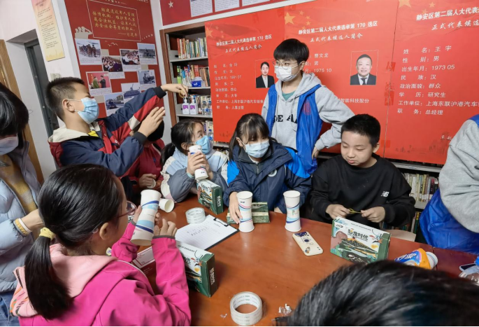 活动中,信机系学生志愿者准备了两个小实验,分别是“纸杯飞行器”和“神奇彩虹泡泡桥”。活动现场,志愿者们一边讲解一边示范,带领着小朋友们一步一步地做实验。大家分工明确,干劲十足,帮小朋友们准备器材,一起制作纸杯飞行器和彩虹泡泡桥,在动手操作的过程中也和小朋友们一起体验了其中的快乐,收获了满满的成就感。整个活动过程中,孩子们的参与程度很高,活动间隙,志愿者们还不忘向小朋友普及实验原理,讲解科学小实验的神奇之处。