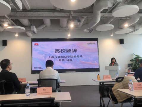学院教务处处长公晨作为学校代表发言,她首先感谢了各方的付出与资源共享,指出近几年上海行健职业学院重视校企合作并取得丰硕成果。她表示,本次参加百舸计划的计算机网络技术专业所在的信机系校企合作的数量和质量排在学院首位,为学院毕业生良性输出和企业对接做出了榜样。最后,公晨老师希望未来可以多一些机会与企业进行深度交流合作,实现人才培养与企业需求更好的对接。