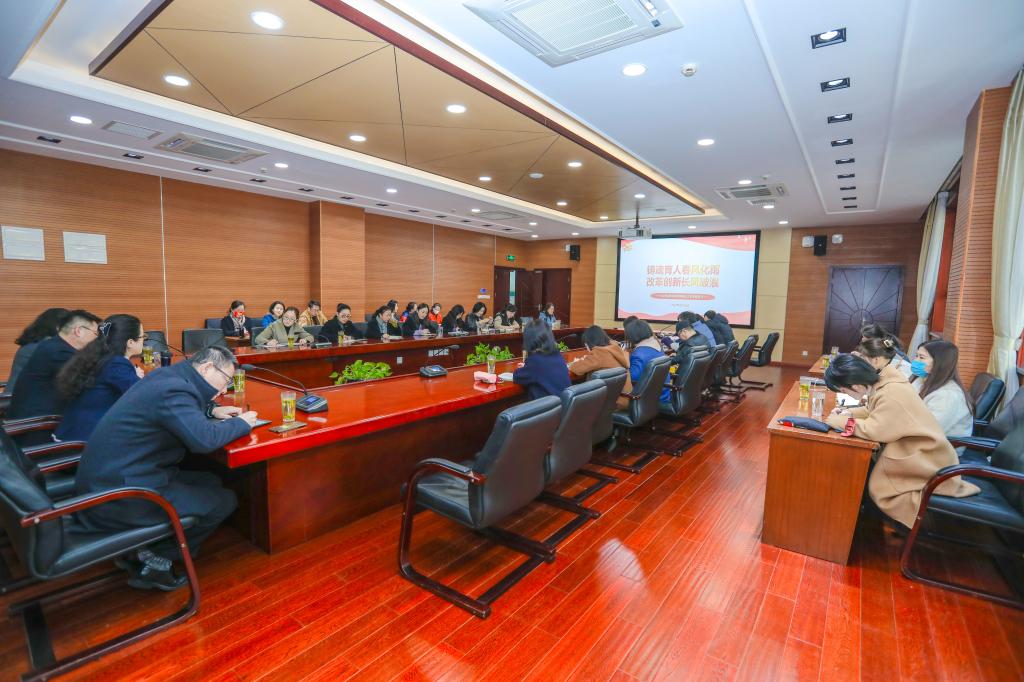 首先,沈燕华书记带领与会人员就2016-2021年全国及上海高校思想政治工作进行了梳理回顾。五年来,学院在上海市教委的领导下,思想政治工作有序有效有力推进,育人成效显著。一是加强党的全面领导,注重思想政治工作的顶层设计。健全了思想政治工作的组织体系,制度体系;二是加强思想价值引领,注重“三圈三全十育人”体系构建。学院紧抓关键群体,重要环节,有效载体,形成育人合力。三是加强师德师风建设,注重教师思想政治素养提升。完善师德师风长效机制,引导教师成为为学为事为人示范的“大先生”。