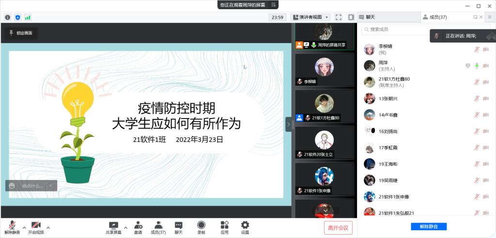 疫情当前,青年先行;共克时艰,人人有责。此次线上主题班会,使学生们进一步认识到了疫情防控形势的严峻性,拉近了特殊时期师生之间的距离,有效引导广大青年凝心聚力、共克时艰。(信机系)