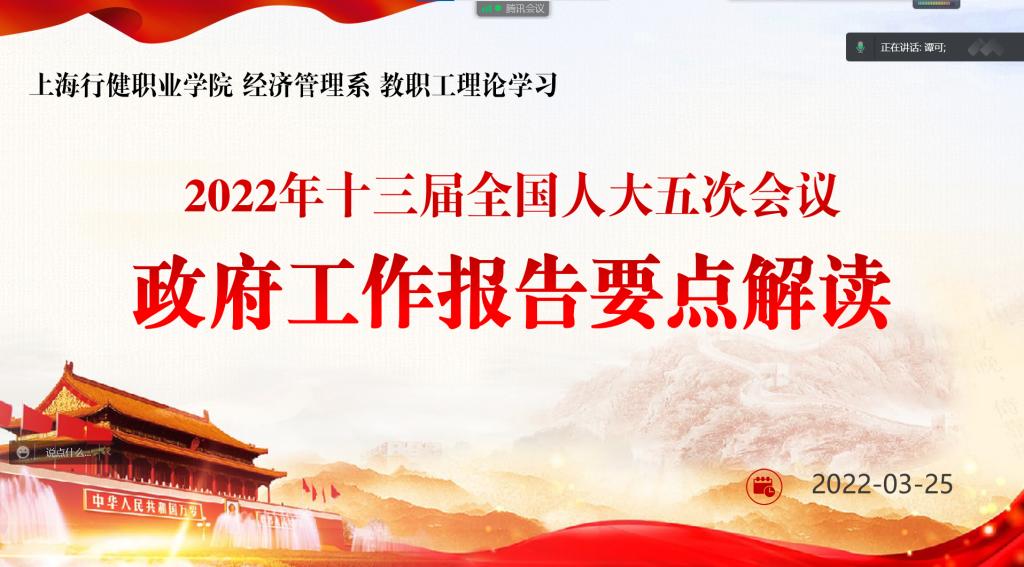 在本次学习会上,系党支部书记谭可首先带领全体教职工共同学习了《2022年十三届全国人大五次会议政府工作报告要点解读》。她提到,作为高校教师,当前既有防控疫情的重要任务,也有推进教育教学工作高质量发展的迫切任务。各位老师要努力提升运用法治思维审视问题、谋划思路、破解难题的能力,坚决执行各项防控要求,携手迎接疫情防控和教育教学任务高质量完成的双线胜利。