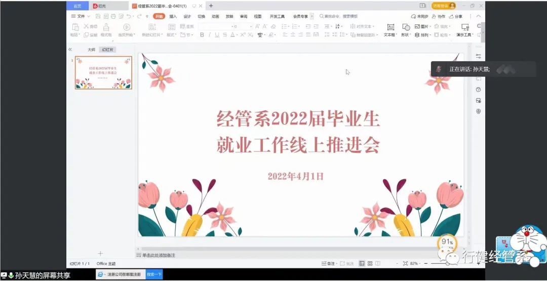 为做好2022届毕业生就业工作。4月1日,经济管理系召开了2022届毕业生就业工作线上推进会。经管系副主任孙天慧主持会议,系党支部书记谭可、各专业主任、各毕业班辅导员、学生事务秘书参加会议。