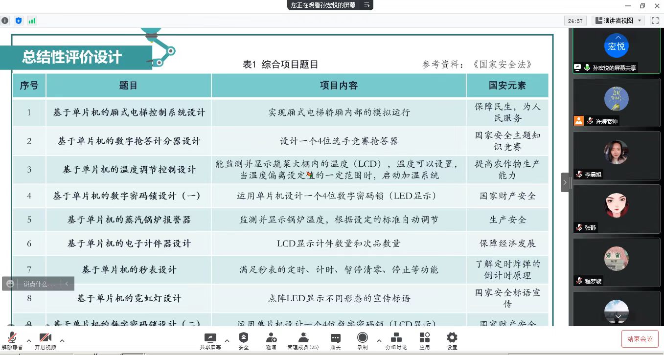 会上,许婧老师就2021年度学院课题的中期情况进行总结。她提到,2021年度学院课题立项27个,截至中期检查之日,课题完成比例均在30%以上,其中16个课题完成比例高于50%。许老师给课题负责人们推荐了职业教育相关的期刊和微信公众号,帮助教师后续的课题进展和论文发表。