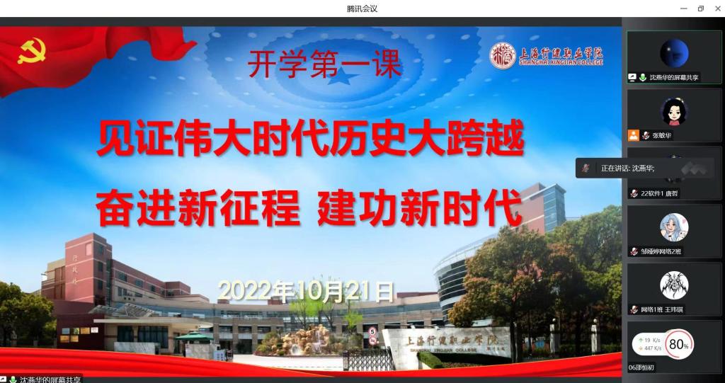 授课内容共分两个部分,第一部分是新时代有新作为新成就。沈书记从经济实力上新台阶、民主政治全面推进、文化自信明显增强、人民生活持续改善、美丽中国步伐坚实五个方面,结合丰富的案例,带领同学们生动地领略了伟大时代的伟大成就,勉励大家从中汲取奋斗力量,坚定理想信念,筑牢初心使命,不负时代、不负韶华,不负党和人民的殷切期望,为实现第二个百年奋斗目标而不懈努力。第二部分是用好“有利条件”,走好“必由之路”。沈书记从加强党的领导凝聚奋进伟力、发挥制度优势保障治理效能、统筹发展安全夯实复兴基础、弘扬中国精神坚定前行信心、持续自我革命锻造强健体魄五个方面向学生们讲述了习近平总书记重要讲话精神,勉励同学们要无愧今天的使命担当、不负明天的伟大梦想。同时,她向学生讲解了行健精神的内涵,即自强不息的进取精神、直面困难的奋斗精神、脚踏实地的实干精神、锐意改革的创新精神。她勉励行健学子要珍惜每一天,珍惜美好的大学时光,在行健赓续红色血脉,放飞青春梦想,铸就成才本领,做无愧于青春的时代新人。
