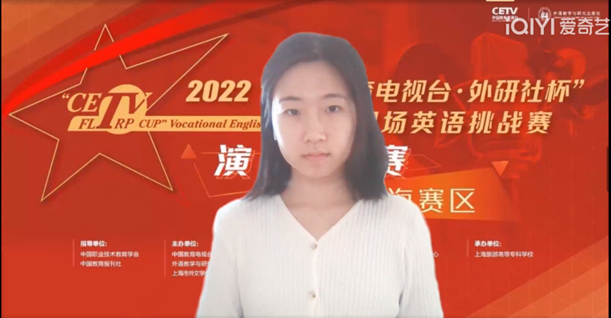 11月5日,2022“中国教育电视台·外研社杯”职场英语挑战赛上海赛区演讲大赛在线上如期开展,20级少儿英语专业2班学生彭若诗在余燔老师的指导下,经过一个月的精心准备,凭借扎实的英语基础与演讲技巧在比赛中脱颖而出,荣获特等奖,将代表上海市参加国赛。