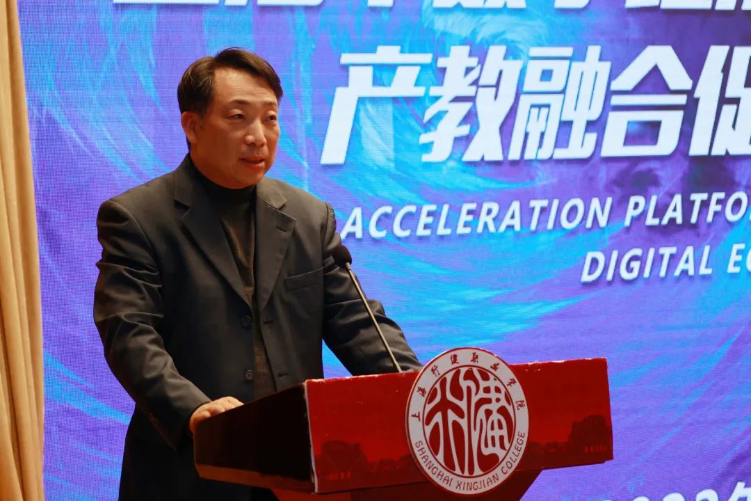 接着,上海市计算机行业协会秘书长裘维东致辞。他表示数字经济产教融合促进平台将以育人为本,协力探索出高质量人才培养产教融合发展模式,共同开创产教融合新局面,为上海打造具有世界影响力的国际数字之都贡献智慧和力量。