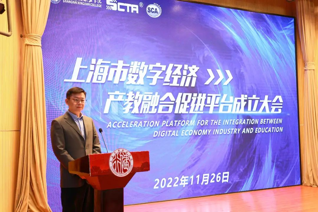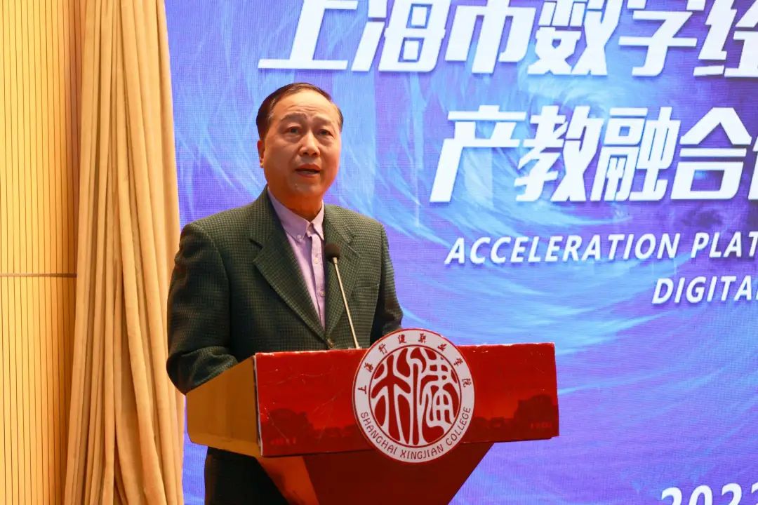 上海市商业联合会常务副会长兼秘书长吴星宝首先致辞。他表示,数字经济产教融合促进平台”的搭建集合了教育界、企业界、联合会和行业协会多方的力量,共商共议深化产教融合内涵发展及构建校企合作新框架和新体系,这种形式本身就是创新和突破。