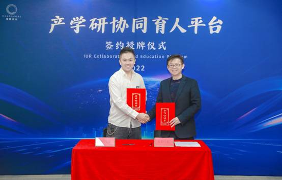 随后,黄群院长和朱才彬董事长就产学研协同育人平台项目签约,并与杨文杰镇长共同揭牌。