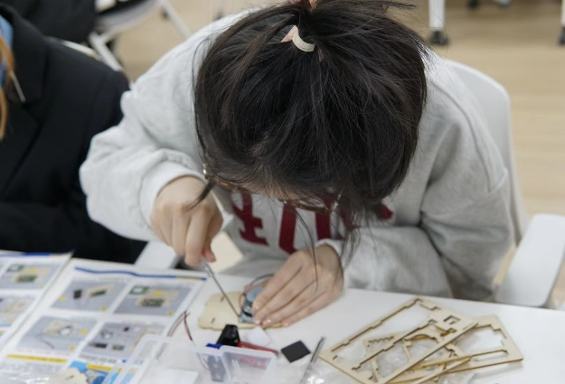 活动现场,在主持人的带领下,大家一起观看并学习了文物修复师王津的故事。随着《我在故宫修文物》纪录片的走红,被称为“故宫男神”的钟表修复师王津进入了人们的视线,他在故宫修复钟表39年,陆续修复和检修了两三百件钟表,他怀着对文物的崇高敬意,对于历史的不断追寻,对于文化的热爱,对于文物修复师这个职业的敬畏心,将这份工作所需要的细致做到了极致。随后,就进入了收音机制作的环节,同学们将收音机的零件慢慢拼插在一起,再画上自己喜欢的图案,一个个独一无二的收音机就制作完成了。