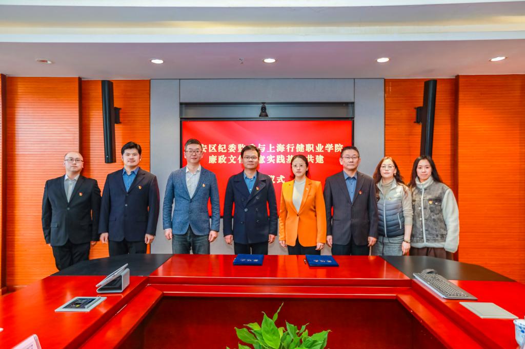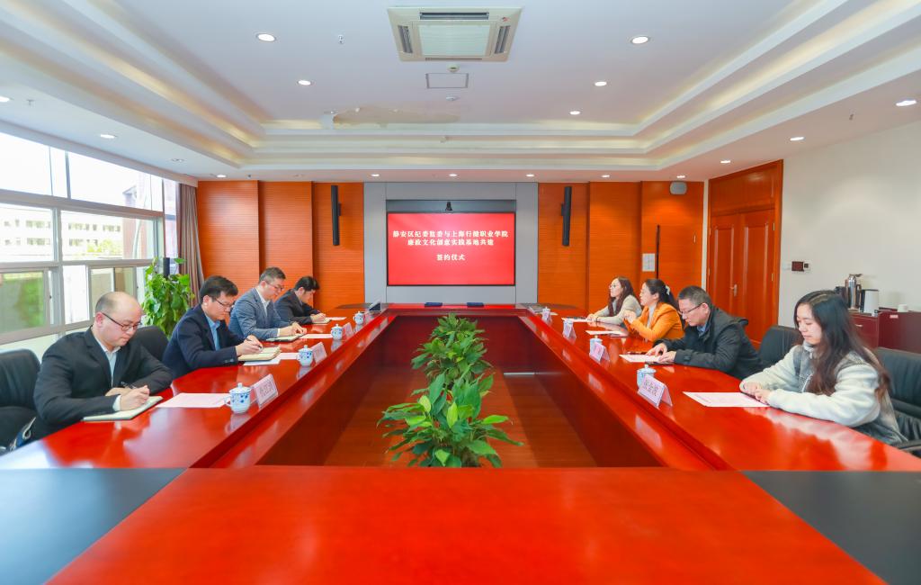 3月7日下午,学校与静安区纪委监委顺利进行“廉政文化创意实践基地”签约仪式。静安区纪委副书记、监委副主任袁鹏彬,静安区纪委监委宣传部部长邵键烜,静安区纪委监委宣传部四级主任科员仇江涛、缪爱军,校党委书记沈燕华,校党委副书记、纪委书记李越,校党委宣传部常务副部长任琳琳及相关工作人员共同参与签约仪式。