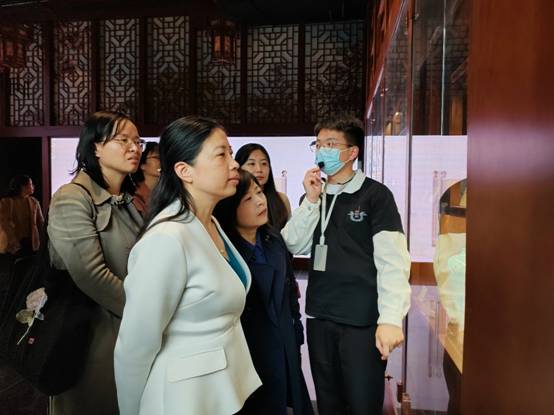 C3M艺术馆总监邢青代表馆方热情接待了行健教师一行,介绍了艺术馆的发展历程、藏品来源以及与行健经管系融合发展的意愿。C3M艺术馆是御承堂与北外滩来福士合力打造的集展览、教育、旅游、文创于一体的艺术空间,是3D与实景相融合的圆明园主题沉浸式场馆。在这里,既有由著名书法家、作家、收藏家蔡暄民先生从欧美日等国收购的万寿罐、海南黄花梨龙椅等圆明园文物,又有采用新媒体、3D+实物造景、互动投影等6项元宇宙技术打造的当年圆明园最全盛时期景象,还有国潮风格的Café空间。目前,学校旅游管理专业已有毕业生在艺术馆综合引导、参观讲解等岗位实习,艺术馆认为行健学子具有较高的专业素养和发展潜力,给馆方留下了深刻的印象,希望与学校继续加大合作力度。