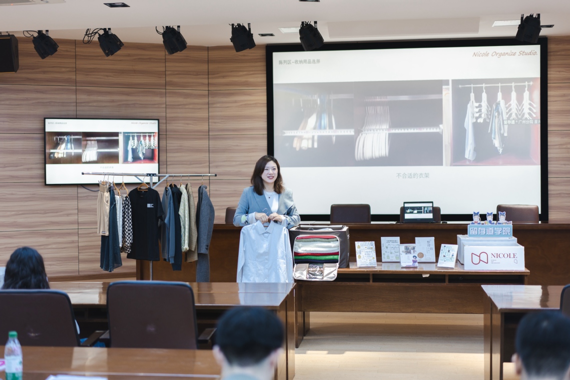 活动中,留存道老师担任主讲,为各位老师讲解了什么是整理收纳,整理收纳不仅仅是对物品的简单归置,更是对生活理念和态度的体现,主要包括规划、清空、分类、筛选、收纳、维护。除了理论讲解,老师还亲自示范了收纳工具和技巧的使用。她详细介绍了各种收纳工具的特点和适用场景,并教授了如何根据物品的性质和用途进行合理分类和收纳。