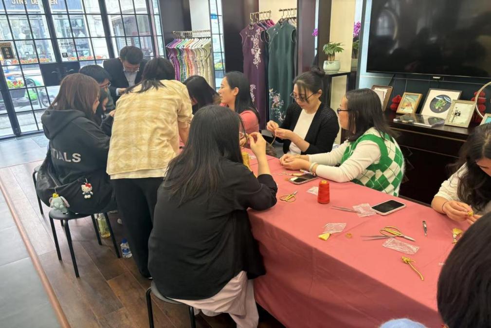 4月11日,由上海行健职业学院工会主办的非遗盘扣文化沙龙,在百年老字号“龙凤旗袍”旗舰店圆满开展。活动以“守艺中华·盘扣传情”为主题,结合文化讲座与手作体验,吸引行健海归教师们积极参与。现场通过理论与实践的融合,让传统技艺跃然指尖,为海内外文化联结架起新桥梁。