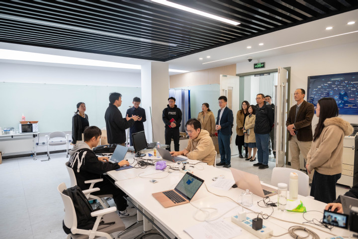 会上,教务处处长公晨重点介绍了通过“面-线-点”策略构建的产教融合体系。市域产教联合体自2023年获批后,聚焦“数智”特色,优化校企合作机制,取得多项务实成果。上海启明软件股份有限公司总裁刘民系统介绍了带徒传技、专业共建、产教融合三位一体的市级技能大师工作室建设路径。该工作室通过项目引领、赛教融合等方式,推动教师能力提升与课程体系重构,融入产业技术标准,已经初步构建起产学研创良性生态。