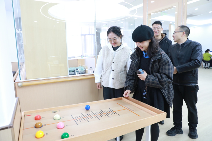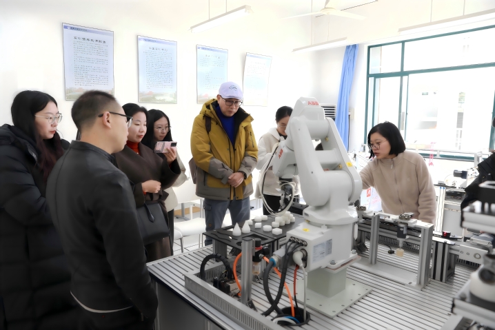 随后,代表团参观了我校实训室。在居家智慧康养实训室,代表团深入体验了模拟真实居家环境、融合智能家居与人工智能技术的教学平台,该教学平台充分展现了我校在培养复合型康养人才方面的前瞻布局。在智能制造实训室及校企合作基地,广南县同仁观摩了铆接工艺等实践教学环节,并详细了解了我校与企业合作研发的“康宝智能体”养老服务项目,这些成果生动体现了我校产教融合的显著成效。在创意学院大学生艺术实践工坊,代表团考察了以影视多媒体专业群产业链为基础、以真实企业项目为驱动的教学模式。通过实地参观,广南县职业高中的教师们对我校以产教融合为核心、强化学生实操能力和就业竞争力的办学理念及丰富的教学资源有了更加深入的了解。