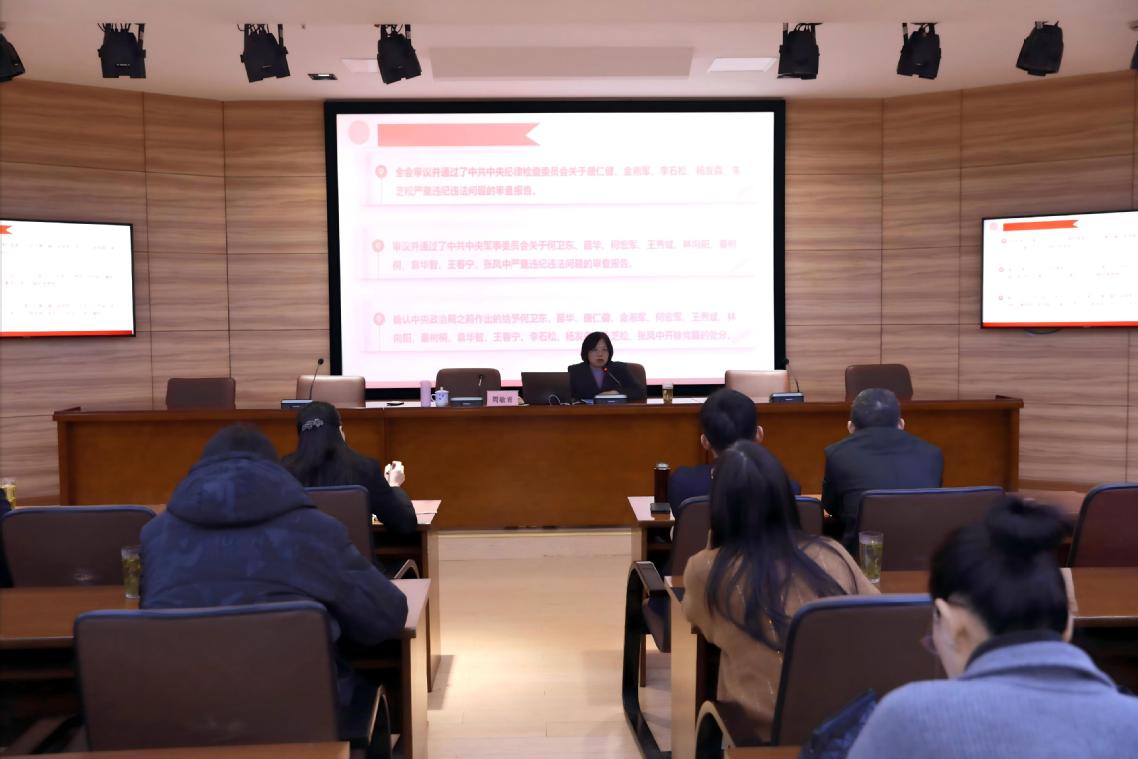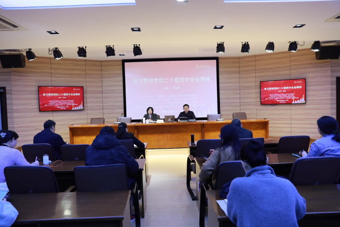 12月5日,学校召开党委理论学习中心组(扩大)学习会,专题学习贯彻党的二十届四中全会精神。会议邀请上海市党的二十届四中全会精神专家宣讲团成员、华东师范大学特聘教授周敬青作辅导报告。学习会由党委书记黄群主持,学校校级领导、中层干部参加。