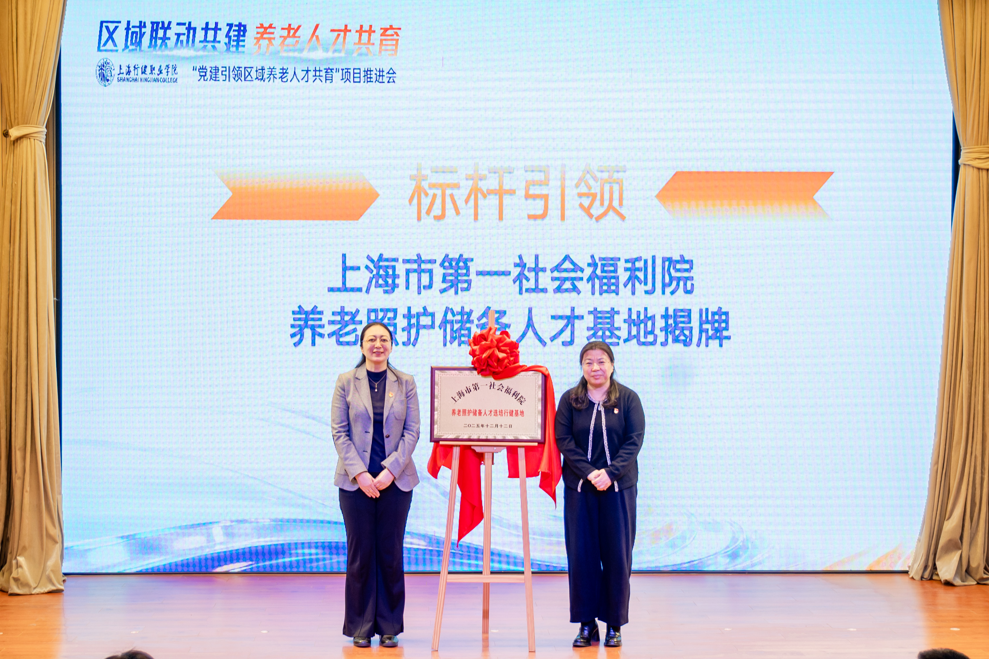 学校还积极打造储备人才基地,校企合力培养高水平养老照护人才。上海市养老领域的行业标杆——上海市第一社会福利院,在学校正式挂牌“养老照护储备人才基地”。静安区教育党工委书记余文君和上海市第一社会福利院院长沈健共同揭牌。