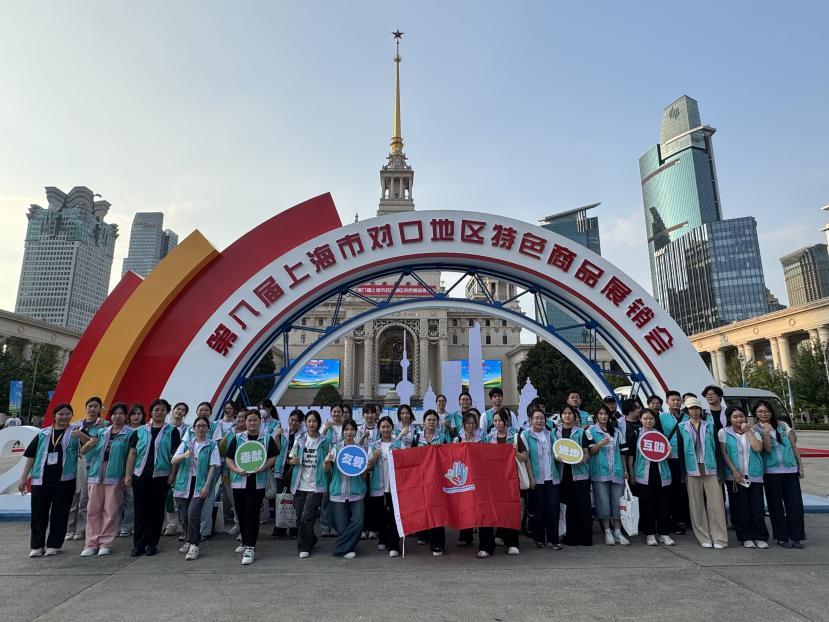 2025.09.09青春力量护航山海情,行健学子助力特色展销会圆满举行为进一步巩固脱贫攻坚成果,助力乡村振兴,推动上海与对口地区产业协作与消费协作深度融合,打造一站式采购平台,以“跨越山海,申情乐购”为主题的第八届上海市对口地区特色商品展销会在上海展览中心拉开帷幕,为顺利保障活动圆满进行,学校团委共招募54名志愿者,组成了一支青年服务队,助力展销会顺利举行。通过前期培训,志愿者对场馆分布和重点服务区域以及展会流程等都已熟练掌握;志愿者根据岗位要求分布在不同场馆,服务于展会洽谈、舞台展演、行李寄存、日常指引等不同岗位,并根据不同场馆的人流量情况实时动态调整服务区域,确保每一场馆的活动都能有序进行。本次展销会不仅是上海与对口支援和合作地区跨越山海的商品交流的平台,更