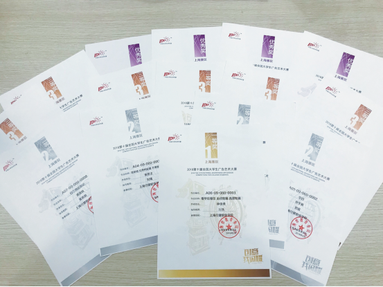 应用艺术系学生在2018第十届全国大学生广告艺术大赛上海赛区的比赛中表现突出,成绩斐然。其中一等奖一名,二等奖四名,三等奖六名,优秀奖三名。视觉传达设计专业群、空间展示设计专业群以及影视传媒制作专业群的学生参与了比赛,刘瑀老师、袁莉莉老师、朱乐艺老师以及郑晶老师参与了辅导工作,其中刘瑀老师被评为优秀指导教师。