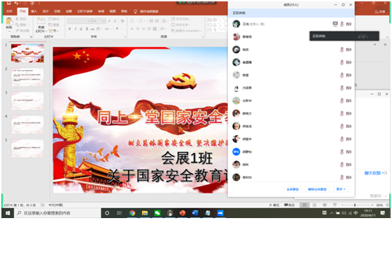 2020年4月15日是第5个全民国家安全教育日,为更好地贯彻落实习近平总书记的重要批示精神,提高学生国家安全意识,应用艺术系各年级辅导员以腾讯课堂、腾讯会议、钉钉、视频微信、QQ等多种云平台为基础,开展了一堂堂内容丰富的线上主题教育班会。