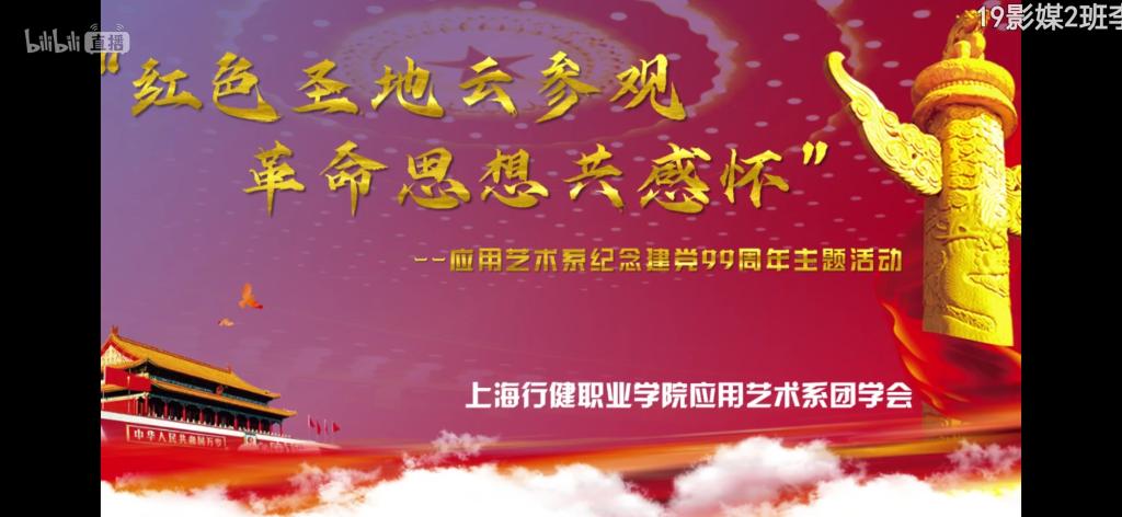 为继承和发扬党的优良传统和作风,进一步增强广大学生先锋模范意识,以实际行动向建党99周年献礼。6月24日12:00应用艺术系开展“红色圣地云参观,革命思想共感怀”活动。通过线上直播的方式带领学系学生云参观红色基地,重温党的峥嵘岁月,还原党的光辉历程。旨在让学生进一步深入地了解到那个时代的思想文化,和革命先烈所处的环境。全系共150名学生参加本次活动,18级影视2班杨燕、19级广告平面孙楠同学主持活动。