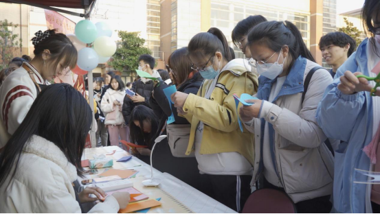 一摞红纸,一盏灯、一双灵巧的手,同学们在老师的指导下,把一张张纸变成精美艺术品,剪纸、宫灯、蒲扇艺术走进校园,不仅弘扬了我国传统的民间艺术,还培养同学们的想象力和创造力。此外,此次活动的开展进一步深化校园文化建设的育人功能,丰富我校传统文化和社会主义核心价值观教育。(撰稿人:陈盐青)