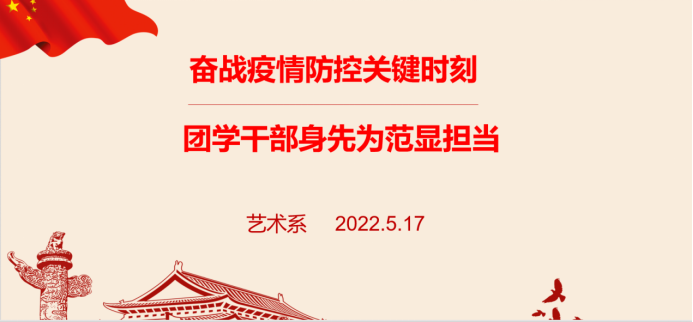 当前,学院疫情防控正值关键时期,5月17日,艺术系支部和团总支召开团学干部线上腾讯会议,号召团学干部带头配合防疫要求,积极参加防疫工作。