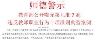 支部书记邝姗带领全体教职工学习了《教育部关于高校教师师德失范行为处理的指导意见》《上海高校教师师德失范行为处理指导意见》《新时代高校教师职业行为十项准则》《事业单位工作人员处分暂行规定》等有关师德师风建设的文件精神,学习了教育部公开曝光第九批7起违反教师职业行为十项准则典型案例,号召教师们向“四有教师”看齐。