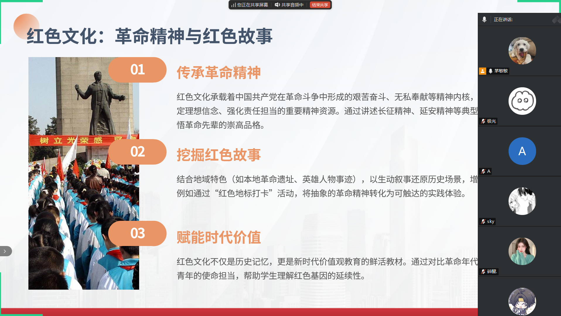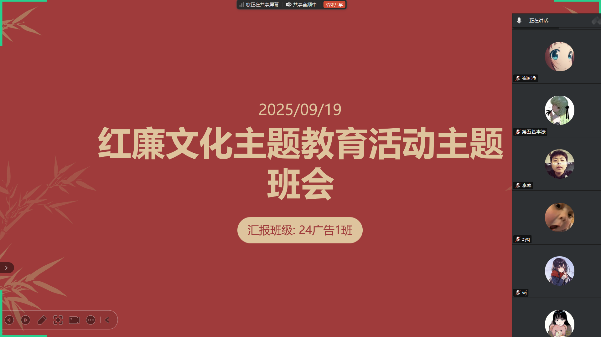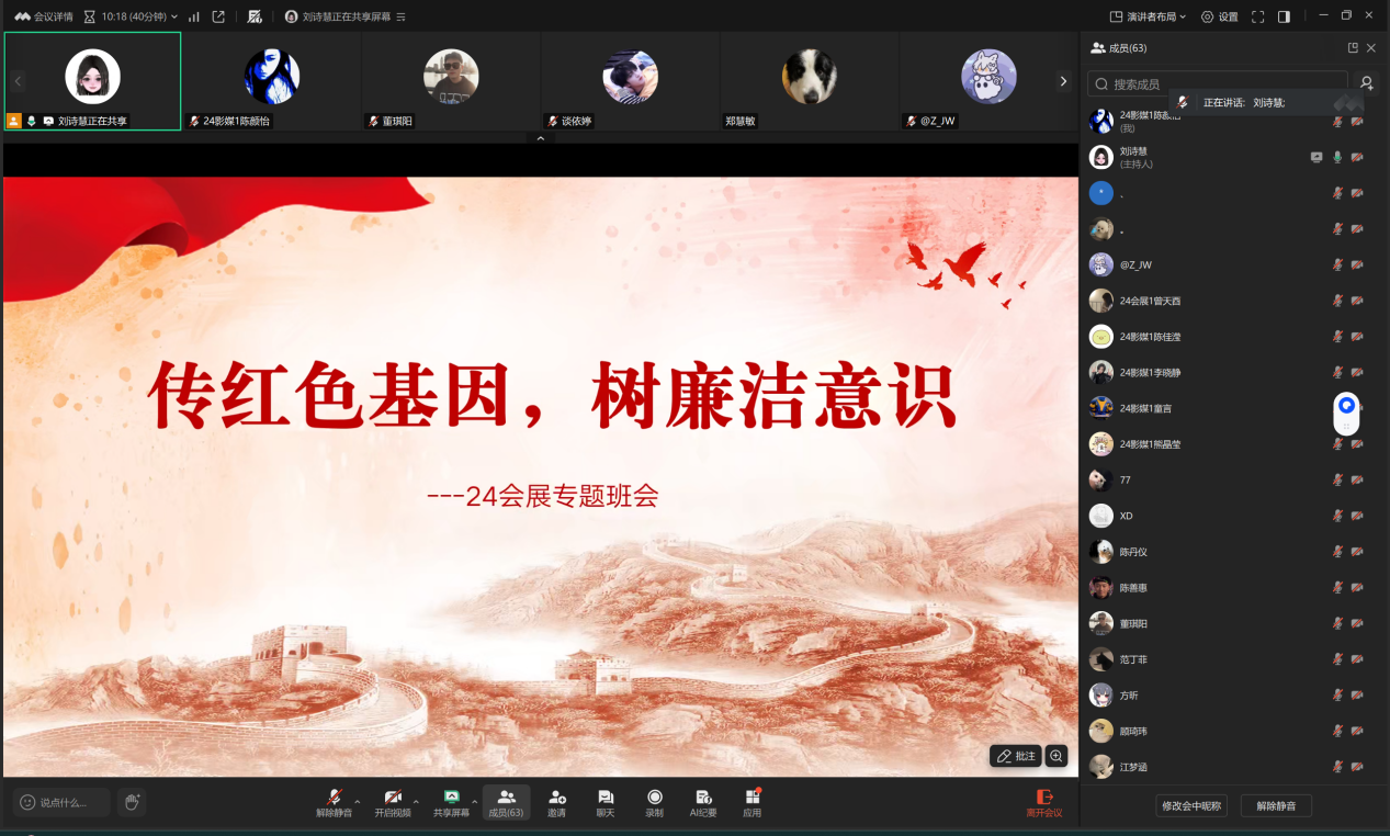 活动中,各班通过读党报、朗诵经典原著、赏析红色影片片段以及“云”参观红色纪念馆及廉政教育基地等多种形式展开。有的班级辅导员带领学生“云”参观井冈山革命博物馆、延安革命纪念馆等红色纪念馆以及各地廉政教育基地,让学生足不出户接受深刻的革命传统教育和廉洁教育;有的班级通过主题班会开展经典红色影片赏析,播放《建党伟业》《廉政风云》等影片精彩片段,以视觉和听觉双重冲击,让学生直观感受革命岁月的艰辛伟大以及廉洁自律的重要性;还有的班级集体学习革命先辈清正廉洁的感人故事,组织学生阅读《人民日报》《光明日报》等党报党刊,了解党的最新政策、方针及反腐倡廉动态,增强学生的政治敏锐性和廉洁自律意识。各个班级成功举办系列主题班会,取得显著教育成效。