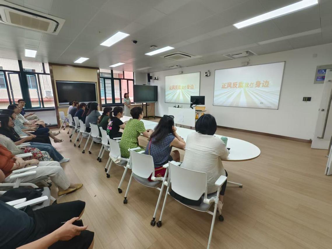 开展一次网上廉洁文化展馆参观体验。各党支部依托静安区网上廉洁文化展馆,组织支部党员参观“专题厅”“影视厅”等模块的图片、视频、H5、小程序多种形式的廉洁文化展品,推动廉洁教育从“集中学”向“常态学”延伸。观看一部警示教育片。各党支部组织教师观看《正风反腐就在身边》《党的作风关系人心向背决定党和国家事业成败》等警示教育主题片,引导教师从反面典型案例中汲取教训,进一步筑牢拒腐防变的思想防线。