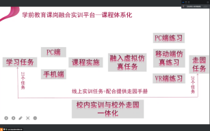 为更好的为虚拟仿真课题研究做好扎实准备,了解课岗、课证、课赛三个教学服务平台的具体内容,2022年7月25日下午1点,学前教育系召开了《虚拟仿真技术在职业教育教学中的创新应用》项目推进线上研讨会。