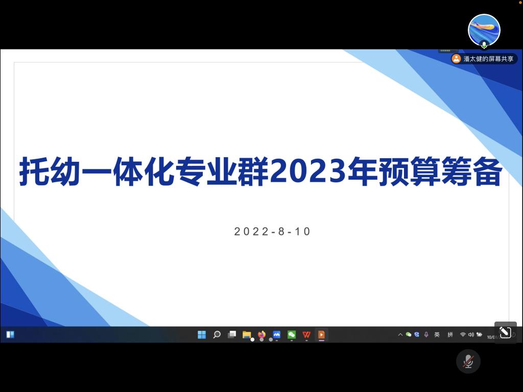 为了推动学前教育系托幼一体化一流专业群项目的建设发展,探索专业内涵建设的新思路,2022年8月10日上午,学前教育系召开了《托幼一体化专业群2023年预算筹备》专项线上研讨会。李娜主任、各专业组长、部分系部教师一起参加了本次活动。