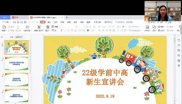 9月19日,2022级学前教育中高贯通专业新生宣讲会采用腾讯会议的方式让老师、同学们相聚云端。虽然受疫情的影响大家暂时未能在线下见面,但老师们还是做好了充足的准备,打开视频,用笑容迎接新生。