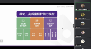11月3日,学前教育托幼一体化建设专业培训在线上顺利举行。本次会议由学前教育系婴幼儿托育服务与管理专业主任潘太健老师主持,学前教育专业主任申海燕老师、“慧优才”好幼师CEO万雯雯、好幼师解决方案总监葛莹、培训师舒欣,以及学前教育系《婴幼儿回应性照料》课程任课教师团队共同参加。