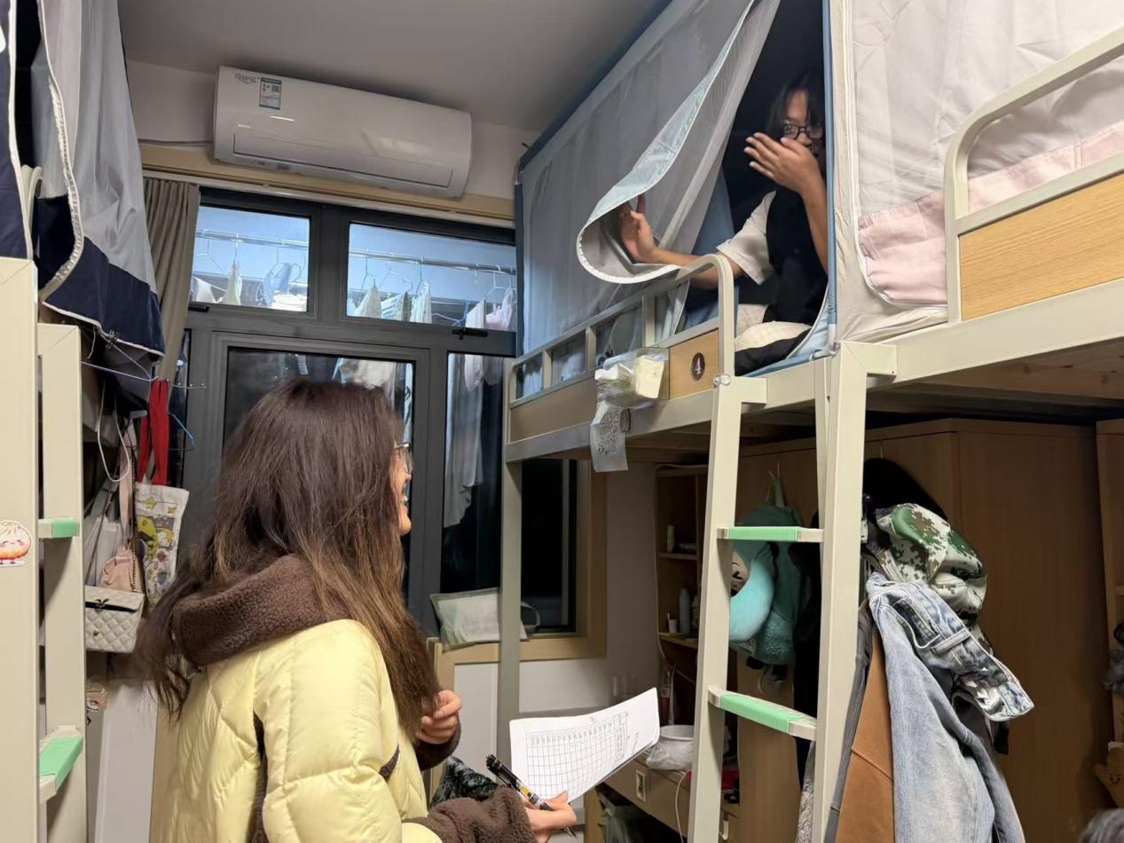 检查过程中,老师们与同学们亲切交流,详细了解大家的日常学习、生活状况与实际困难,认真听取学生对宿舍管理的意见建议。同时,辅导员向同学们宣传解读学校宿舍安全管理规定与生活注意事项,强调维护宿舍公共安全、保持整洁环境的重要性,引导同学们增强自我管理、自我服务、自我约束的自觉性,共同营造温馨有序的寝室氛围。