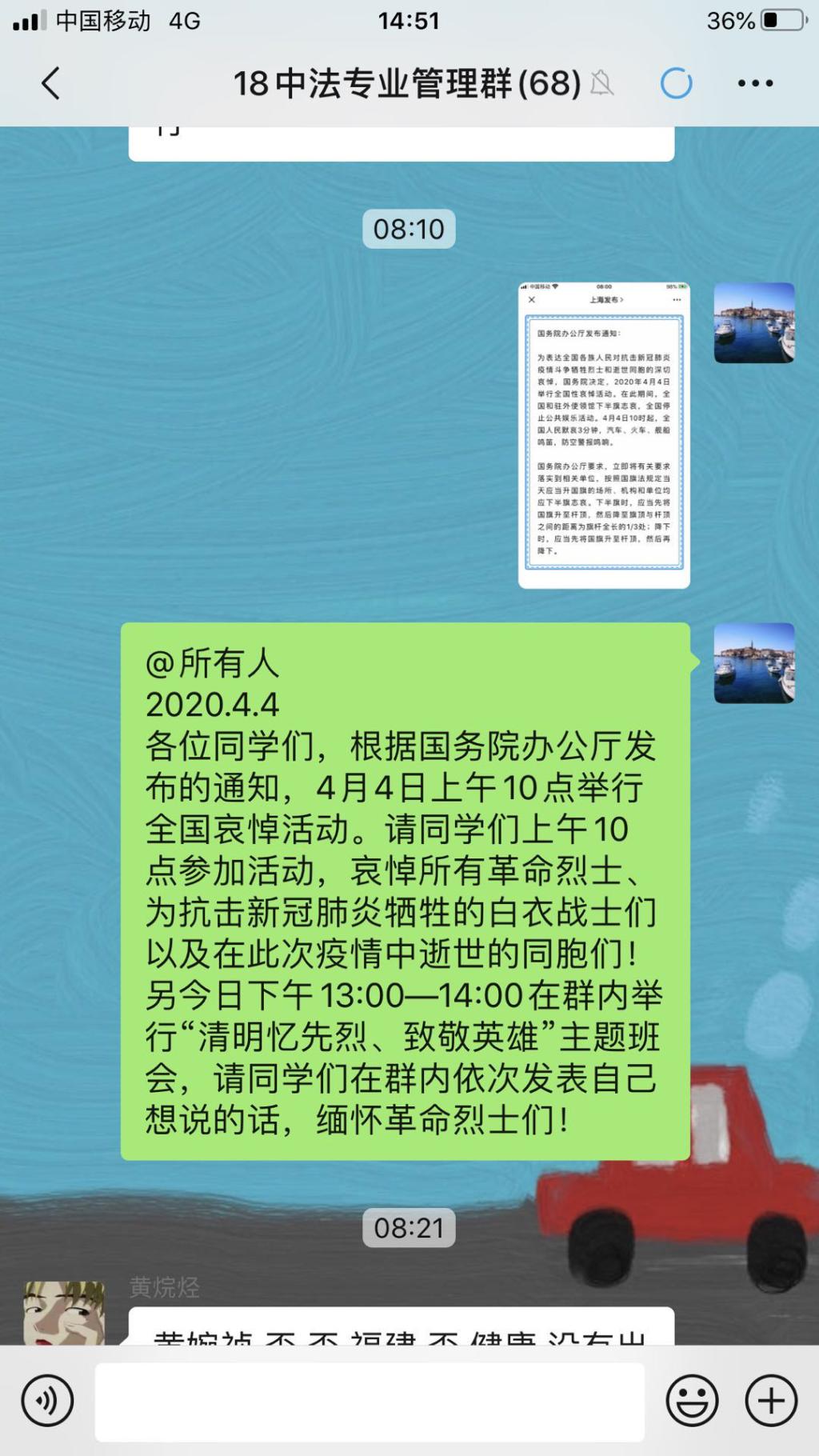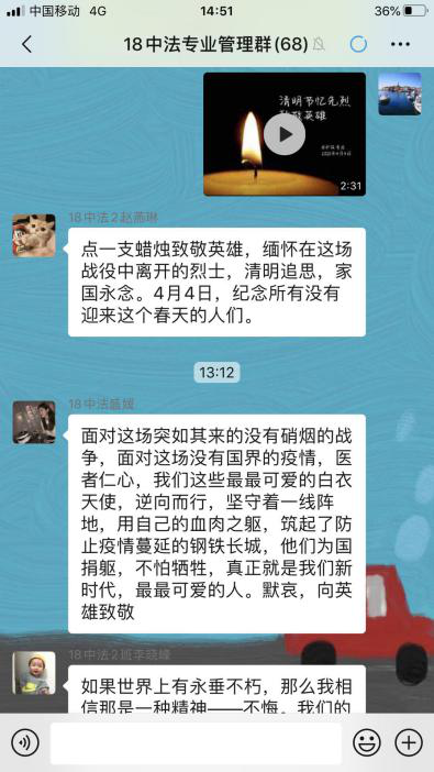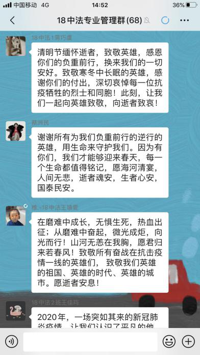 为弘扬中华传统文化、加强爱国主义教育。4月4日清明时节,经管系开展“网络祭先烈”活动,缅怀所有革命烈士、抗击新冠肺炎牺牲的白衣战士们以及在此次战“疫”中逝世的同胞们!学生们追忆历史、缅怀先烈、致敬为抗击疫情奉献生命的白衣战士们,用自己的方式,为牺牲在这场没有硝烟的战争中的最美逆行者哀悼。