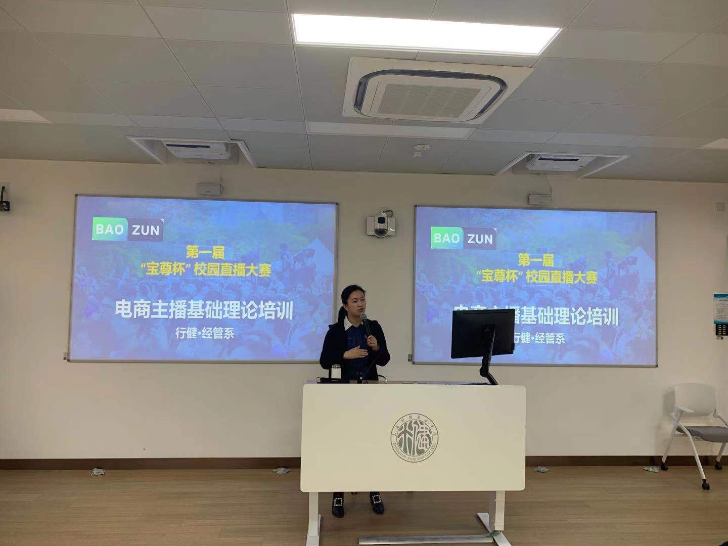 首届“宝尊杯”校园直播大赛,是由上海市经济类教指委主办,上海行健职业学院等院校协办,与全国知名代运营企业“宝尊电商”举办的关于直播技能培养与后备人才梯队建设的大赛。这也是由企业首次联合发起的针对电商直播类人才的技能展现竞赛,共分为视频海选、入围实训、实战决赛三个环节,目前已吸引全国多家院校积极参与。我院共有5支队伍报名参加此次比赛,指导老师和选手涉及不同的系部。2021年4月2日中午,我院经管系邀请了电商行业专家杜双双老师,为学院参加直播大赛的同学们开展了一次赛前培训活动,各带队老师也参加了此次培训。