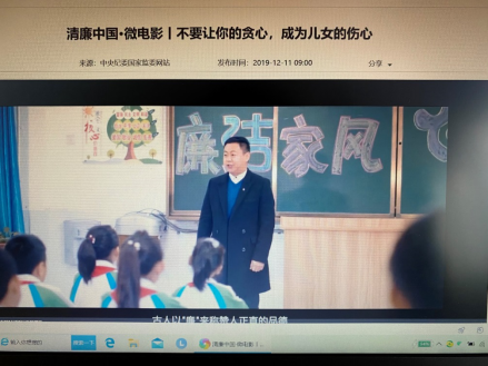 外语系党员教师在中央纪委国家监委网站观看了“在线访谈”或“清廉中国”栏目中的短视频,并畅谈所思所悟。大家一致认为党员要坚决预防和反对腐败,干干净净做事,老老实实做人。对照要求、对照目标,认真全面查找自己在廉洁自律方面存在的差距,进一步强化自我修炼、谨言慎行、慎独慎微、慎始慎终,在廉洁自律上作表率。