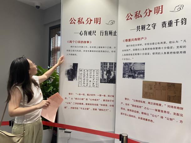 馆内展出的缝补多次的长衫、简陋生活用具、拒绝优厚待遇的信函等实物,无声诉说着陶行知先生的廉洁节操。“康韵悠长 陶公风范——清廉陶行知专题展” 中,一个个公私分明的故事,展现其“一生淡泊明志,公私分明”的生活态度。陶行知毕生投身教育,始终坚守“不拿教育一分私财”的原则,甚至将稿费全部用于资助贫困学生与办学,直至逝世仍两袖清风。