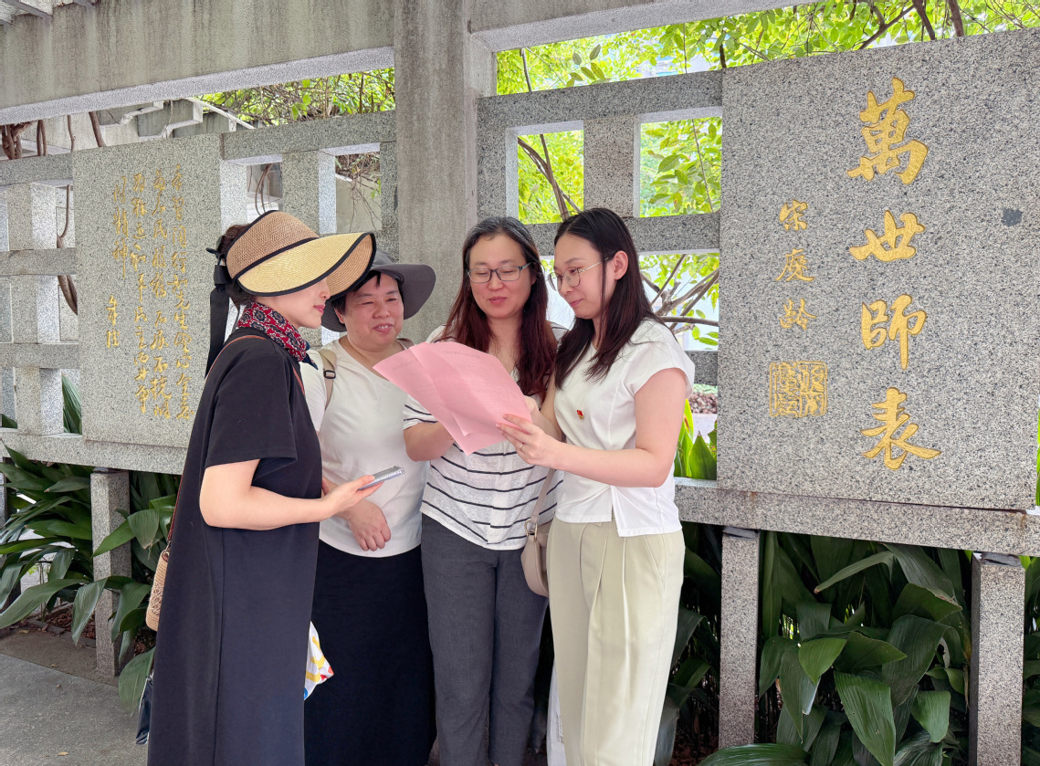 活动中,教师们以小组为单位,围绕《清风行知・师德寻踪》任务单,聚焦 “初心、实践、仁爱、清廉、使命”五大主题开展研学。